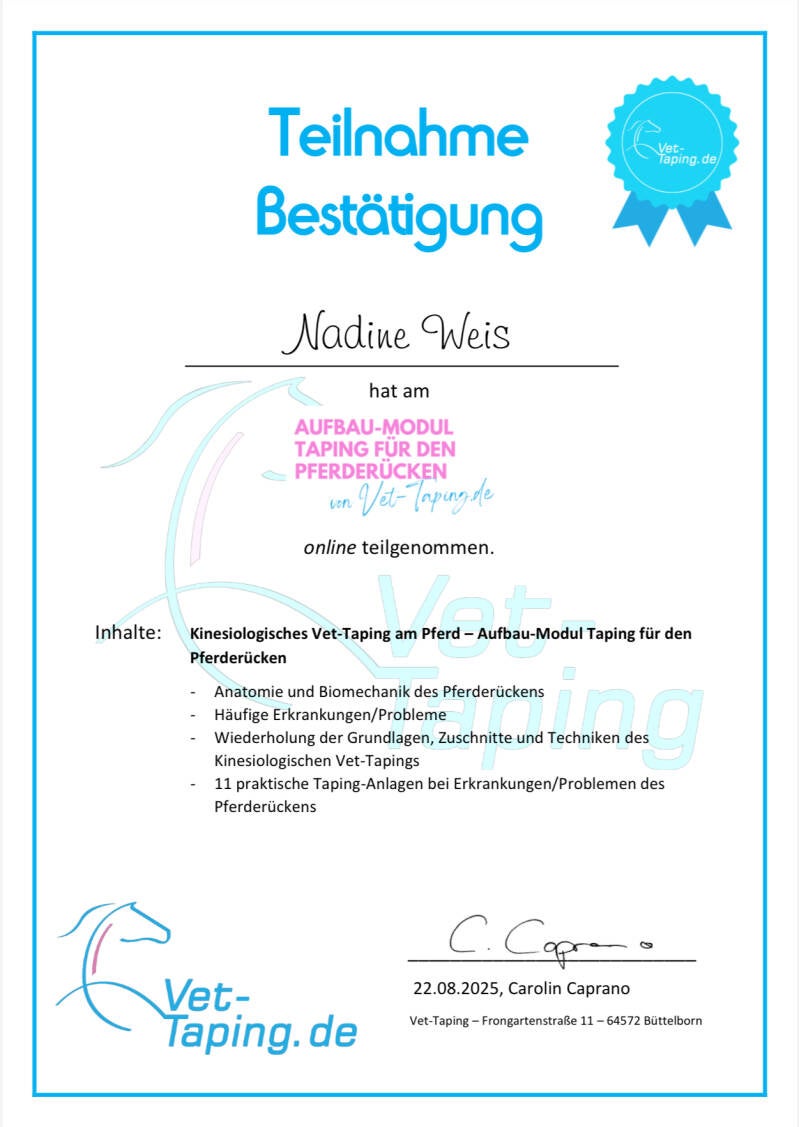 Zertifizierte Pferdeosteopathin (VETogether Ausbilder: Ralf Döringshoff)