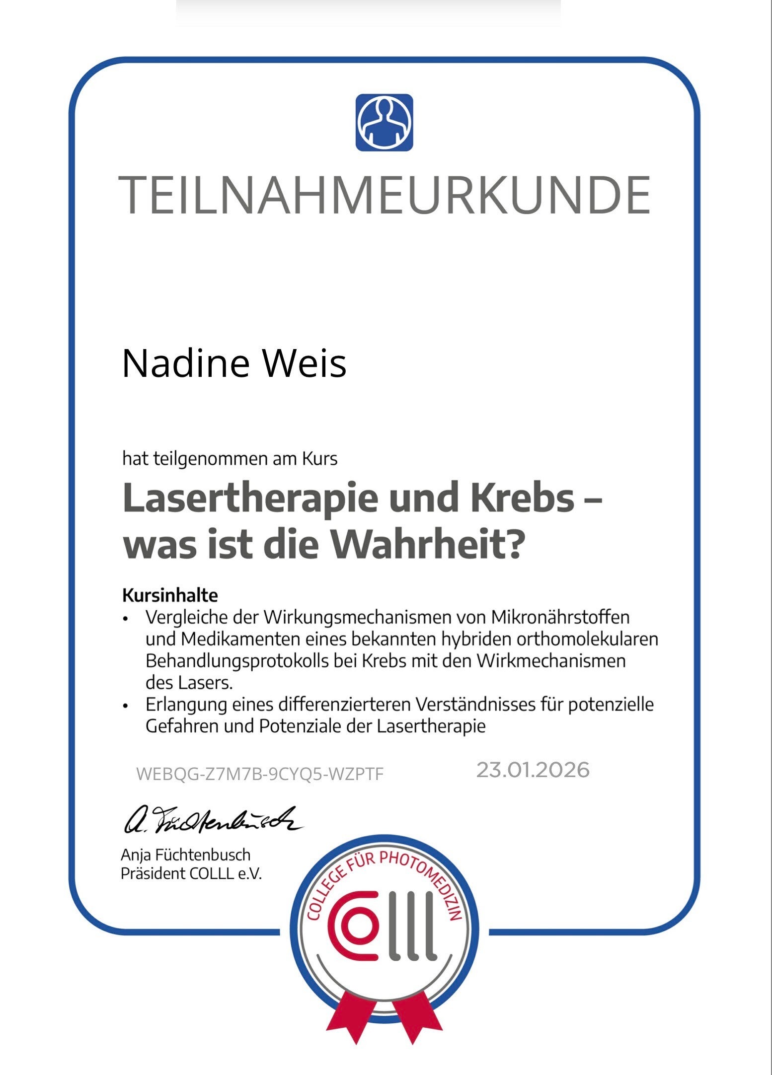 Zertifizierte Laserschutzbeauftragte (College für Photomedizin)
